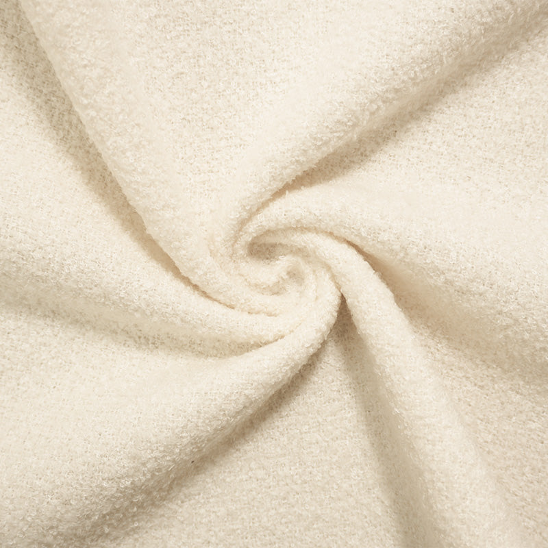 Ivory Wool Poly Solid Boucle Woven Jacketing Fabric