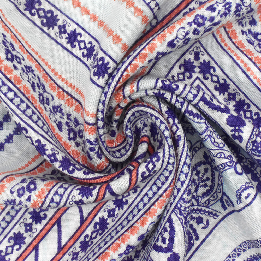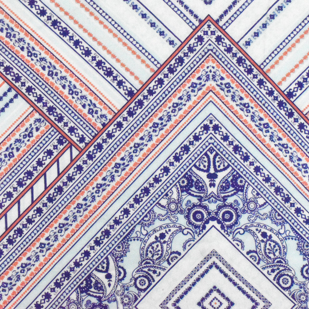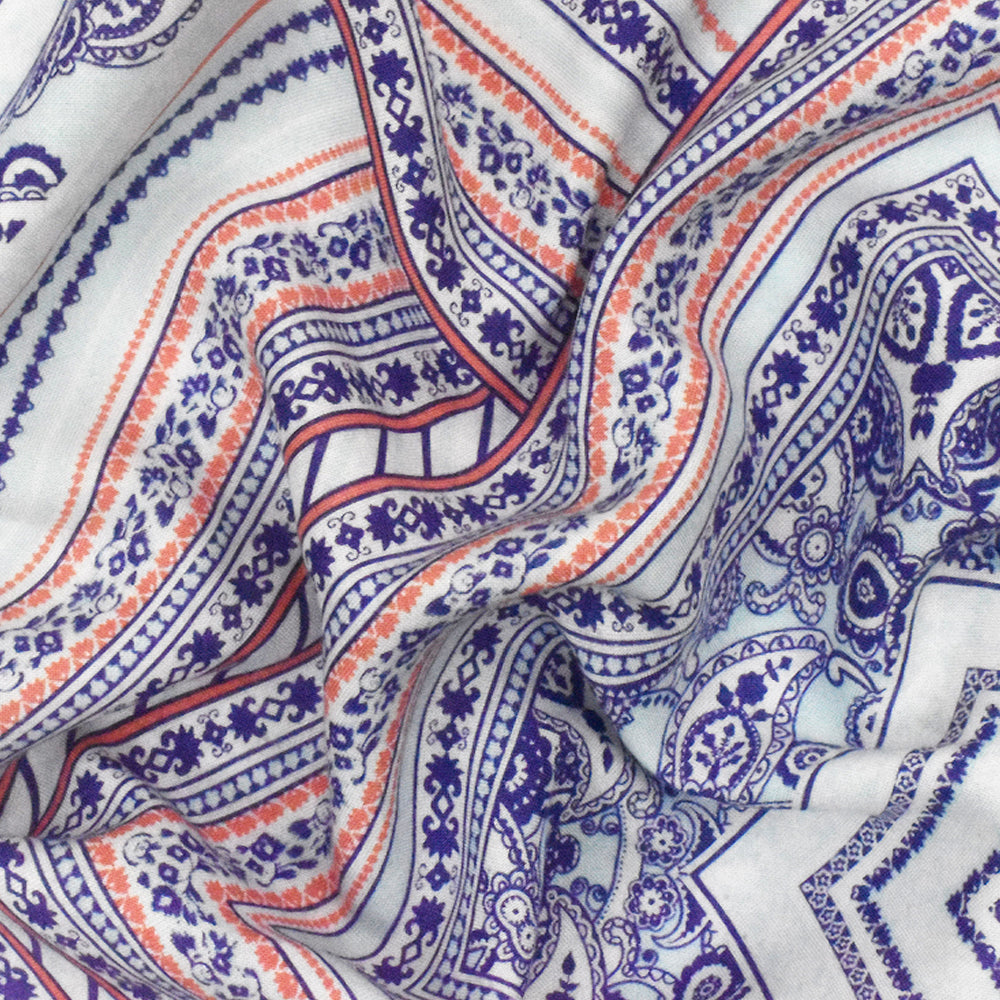 1 1/4 YD PC-Soft Blue-Purple-Multi Geometric With Paisley Printed Challis Woven Fabric