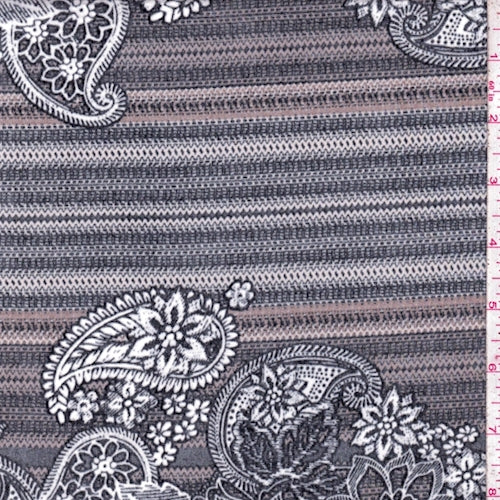 7/8 YD PC-ITY Black/Tan/Brown Paisley/Floral Jersey Knit Fabric