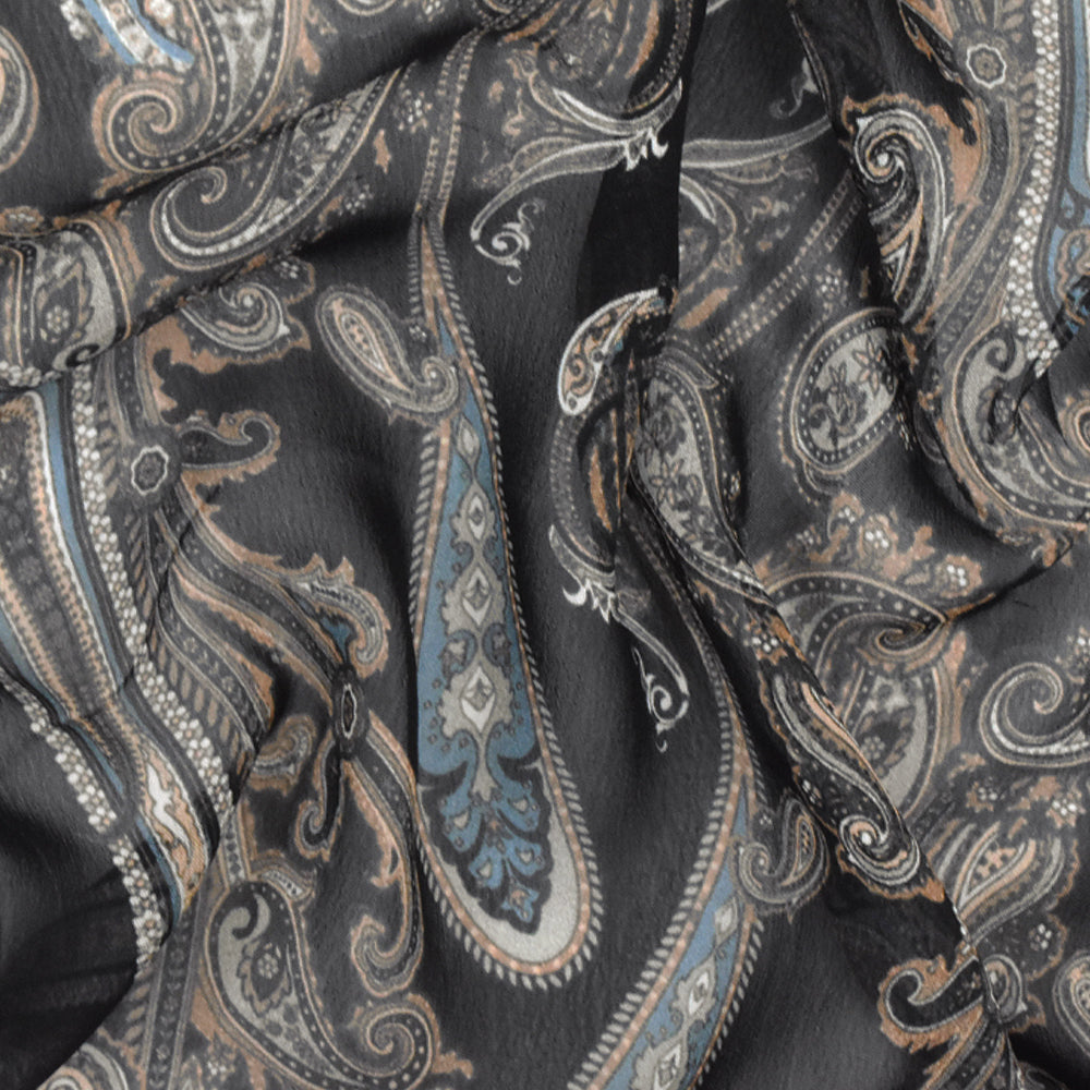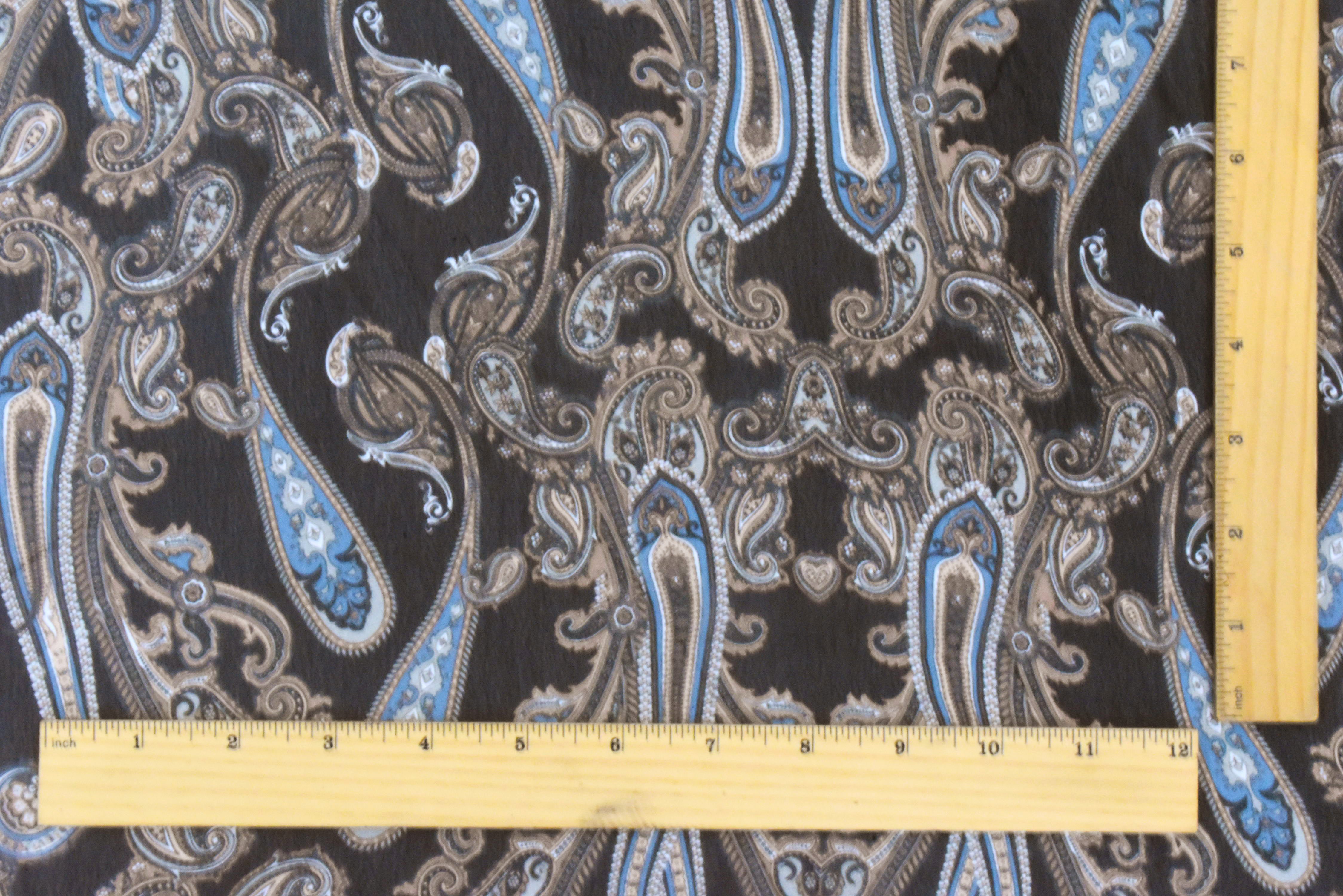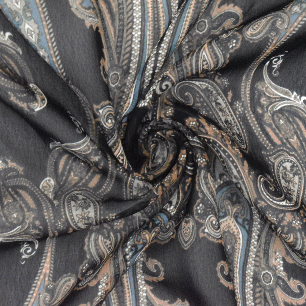 Black-Blue-Multi Famous Designer Paisley Printed Rayon Chiffon Fabric