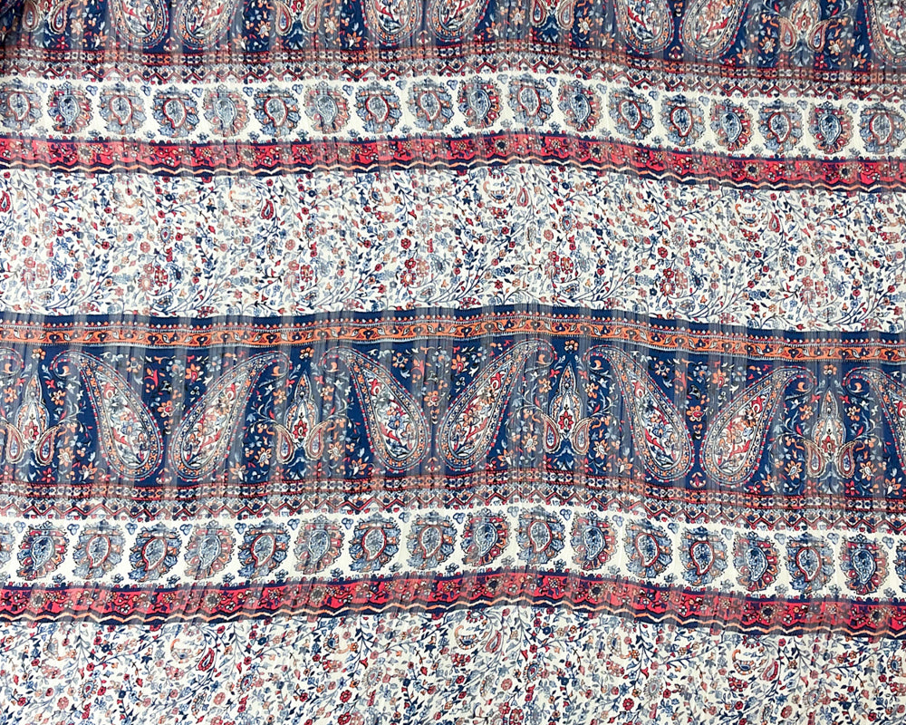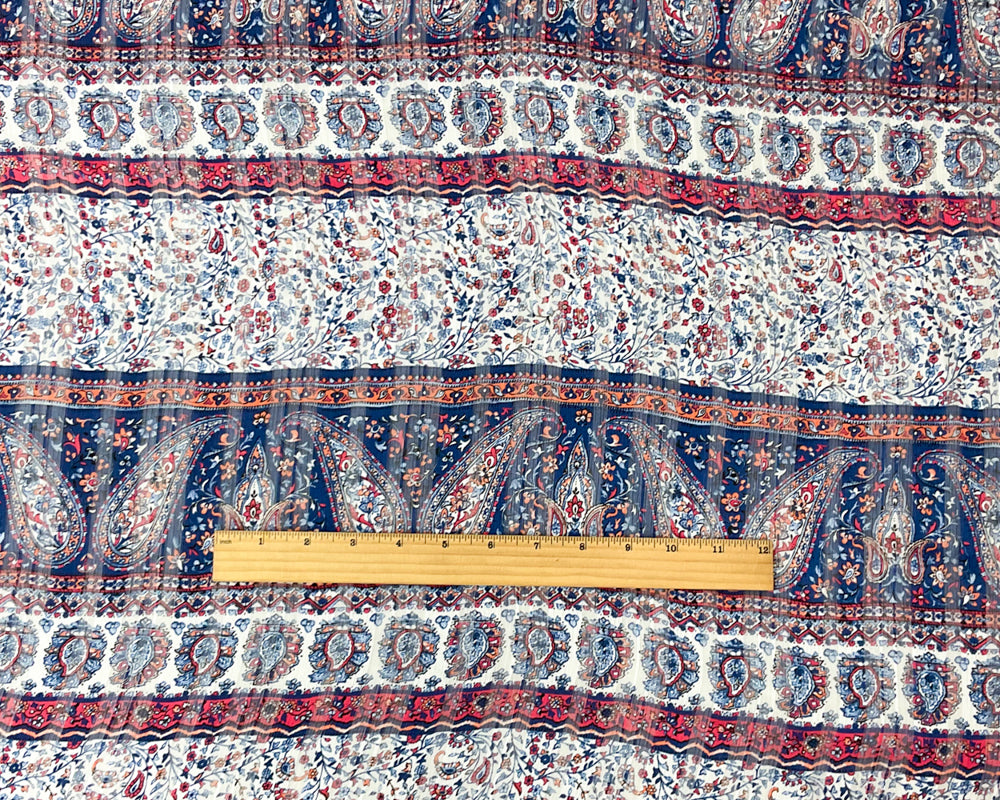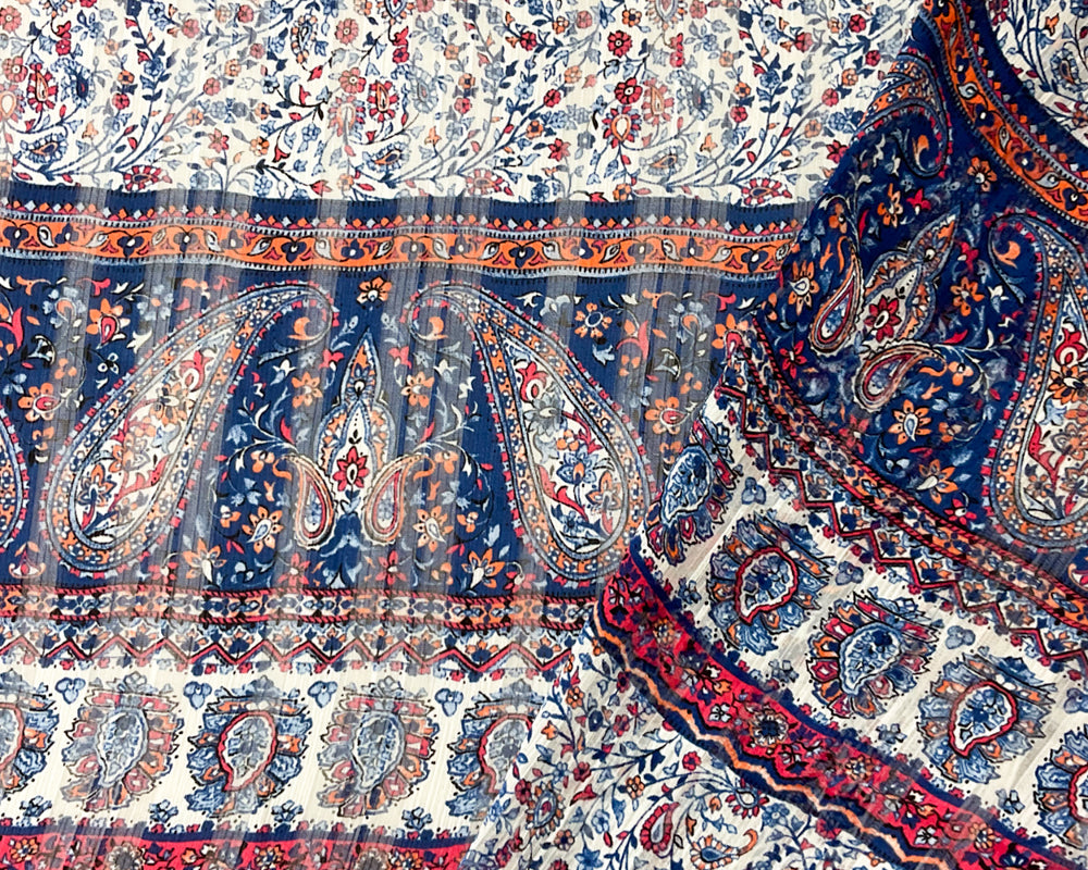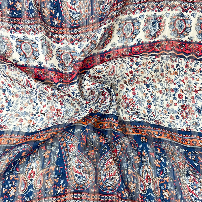 Blue-Multi Paisley Print Satin Stripe Chiffon Woven Fabric