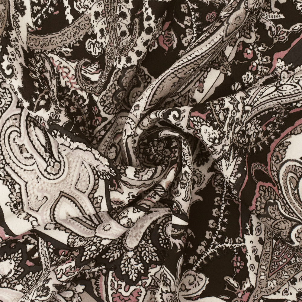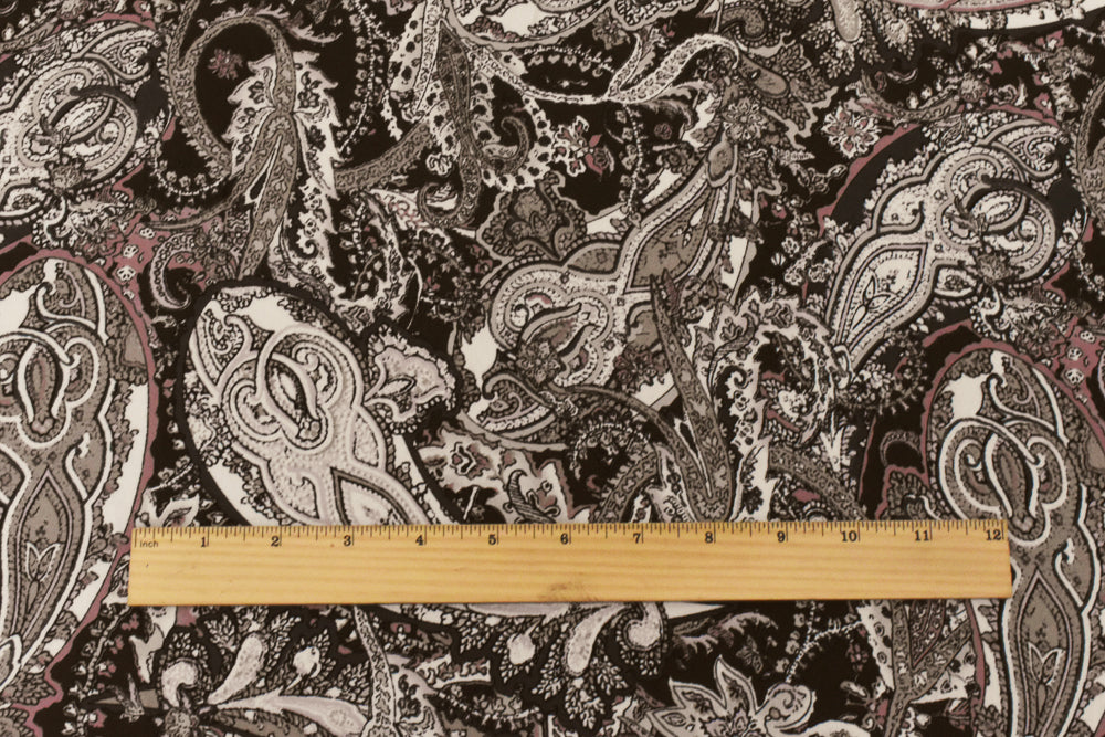 Brown-Ivory-Multi Paisley Printed Poly Georgette Woven Fabric
