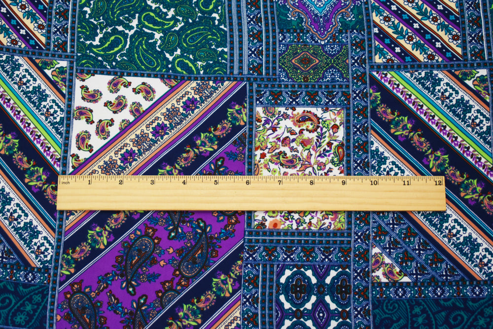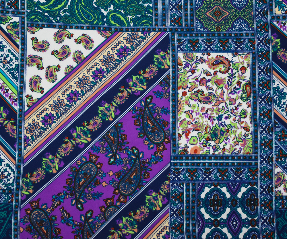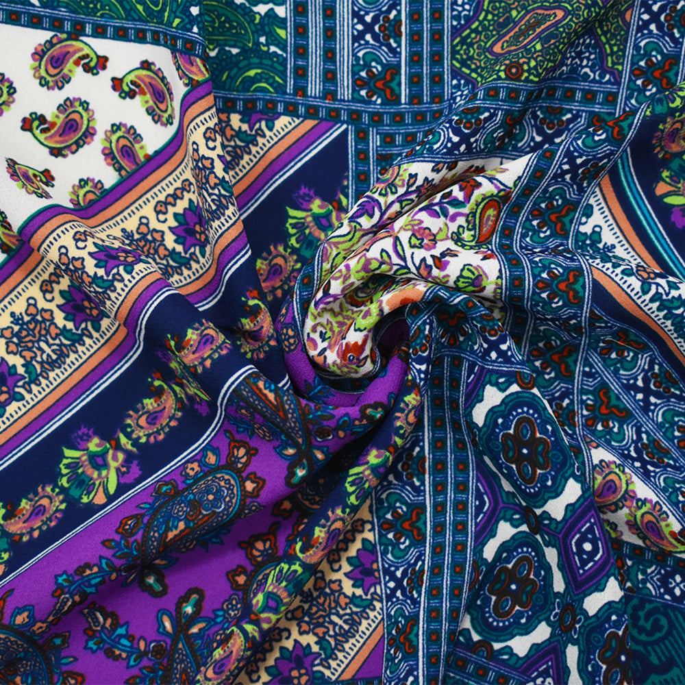 Deep Teal-Blue-Multi Paisley Bandana Printed Momie Georgette Woven Fabric