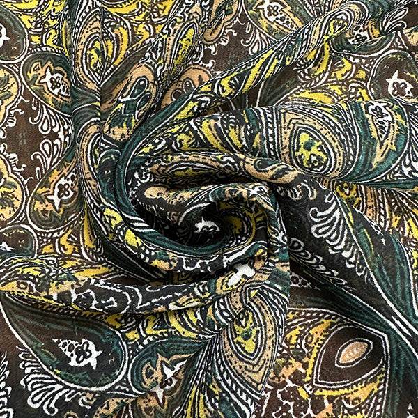 Green and Maize Multi Print Poly Georgette Fabric