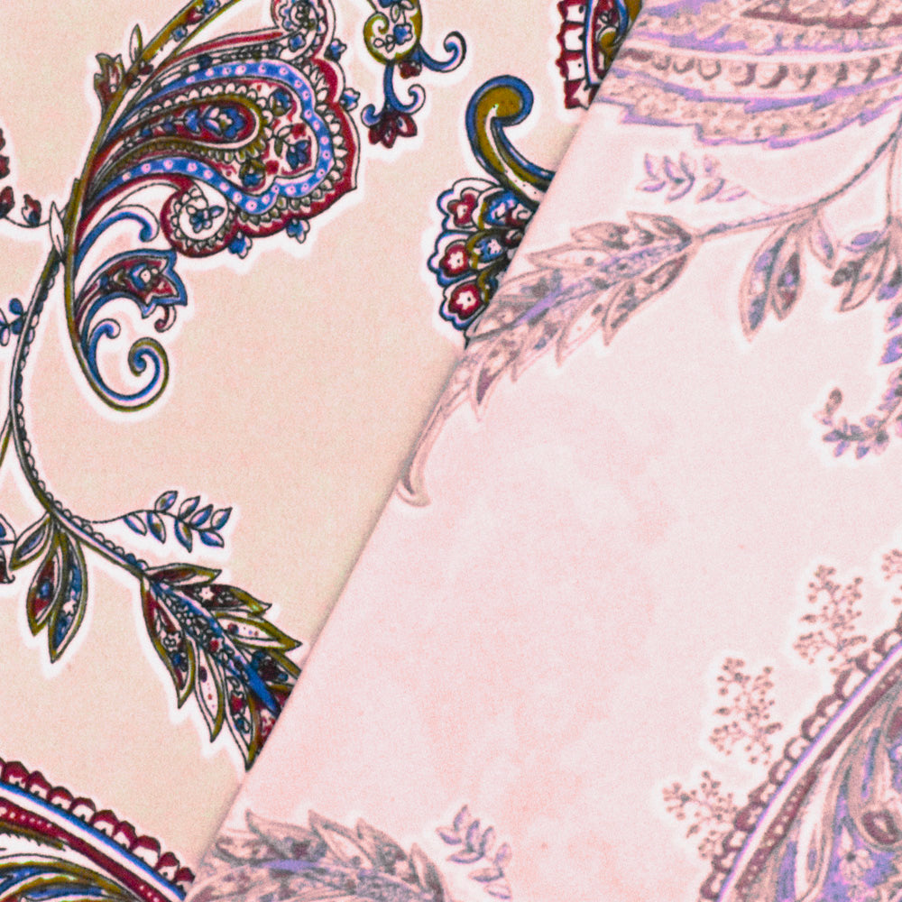 Light Pink-White-Multi Paisley Printed Stretch Polyester ITY Knit Fabric