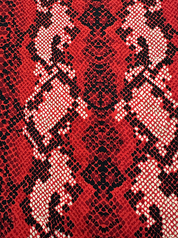 -Red, Black, & Beige Multi Snakeskin Animal Print Poly Georgette Fabric