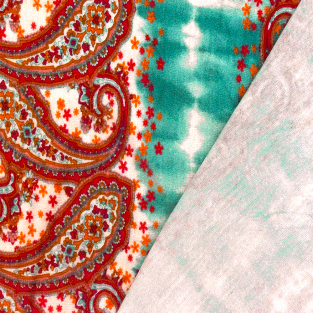 Teal-Red-Multi Striped Paisley Printed Rayon Stretch Jersey Knit Fabric