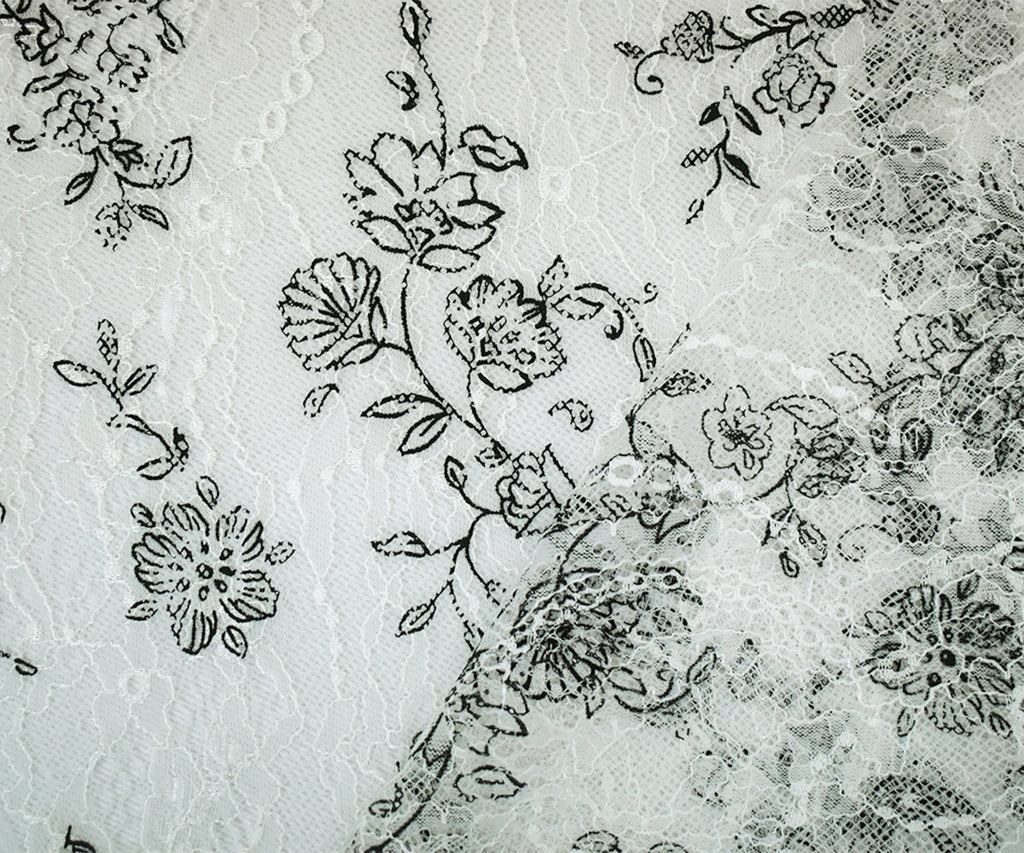 White-Black Nylon Floral Paisley Printed Lace Mesh Knit Fabric