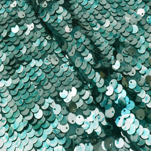 1 1/2 YD PC-Mermaid Teal/Silver Sheer Sequined Stretch Mesh Fabric