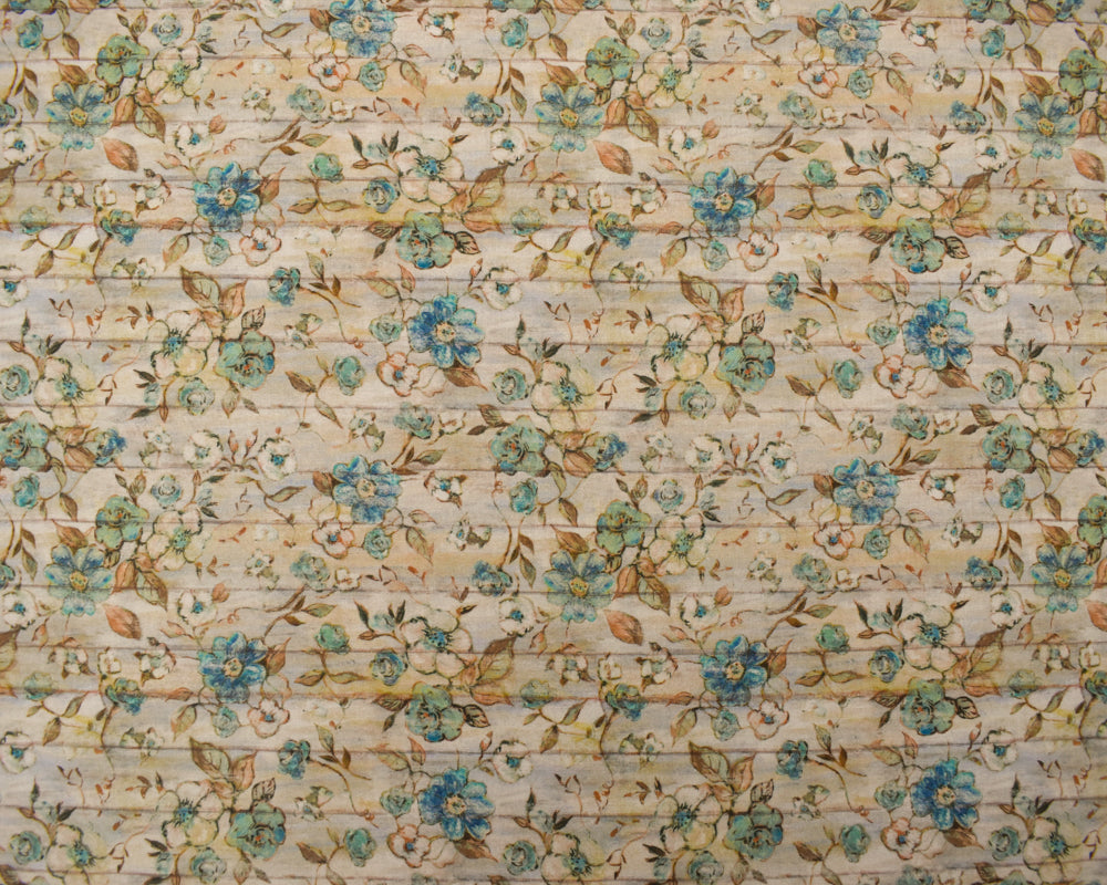 1 1/4 YD PC-Teal-Ivory-Multi Cotton Susan Winget Floral Wood Printed Quilting Woven Fabric