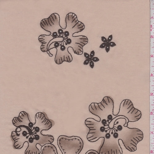 1 3/4 YD PC-Beige/Mocha Embroidered Hibiscus Lawn Fabric