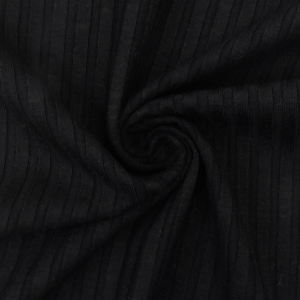 1 7/8 YD PC-Jet Black Stretch Cotton Rib Knit Fabric