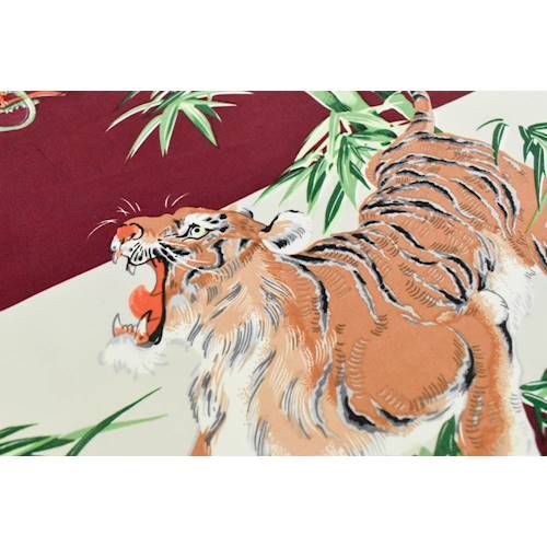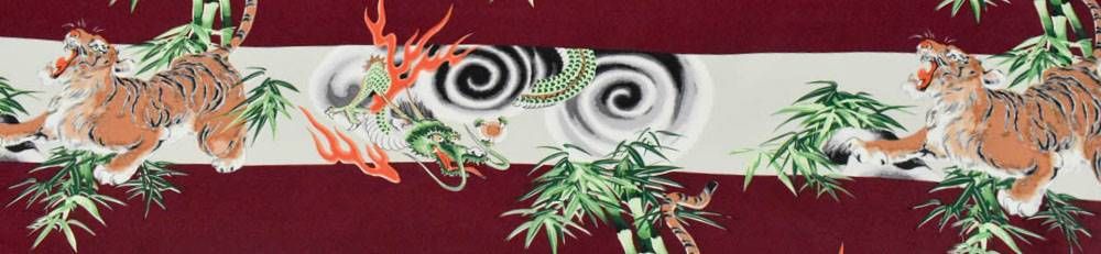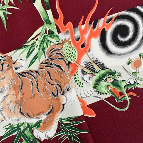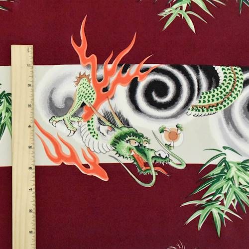 1 YD PC-Maroon Red/Green/Multi Tiger and Dragon Rayon Print Fabric