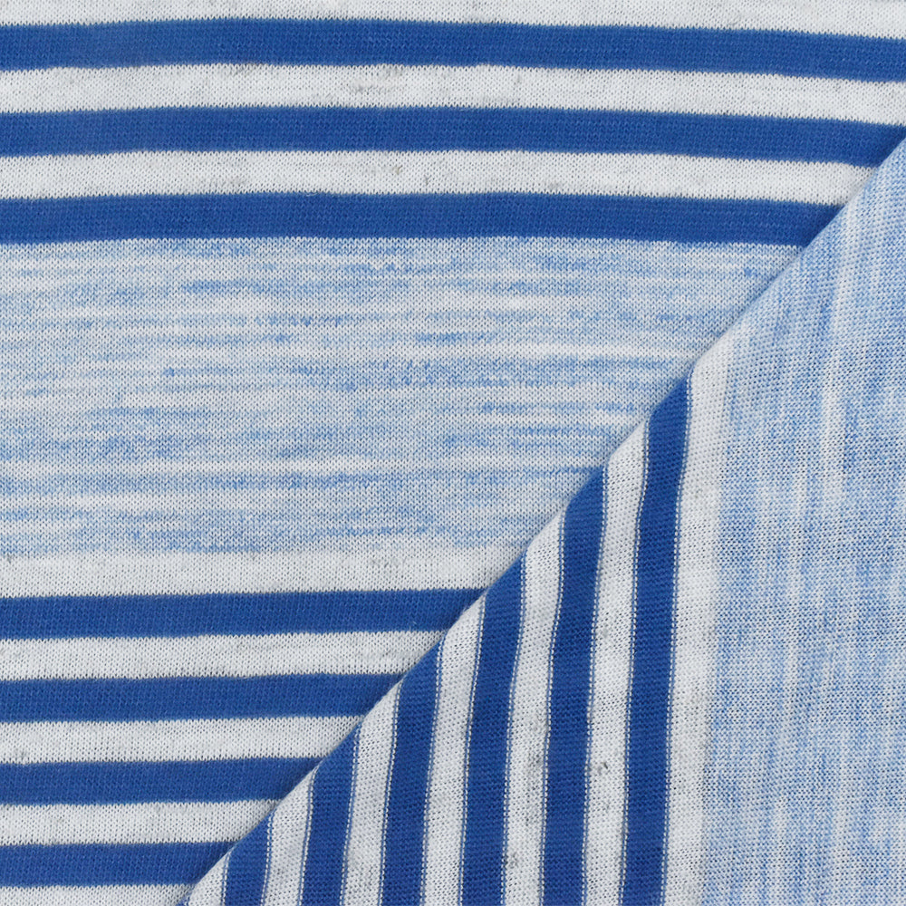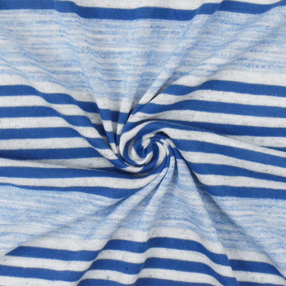 2 1/2 YD PC-Blue-White Stripe Stretch Jersey Knit Fabric