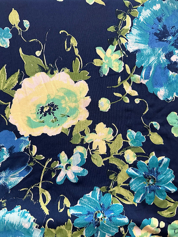 2 3/4 YD PC-Green Multi Floral Print ITY Jersey Knit Fabric