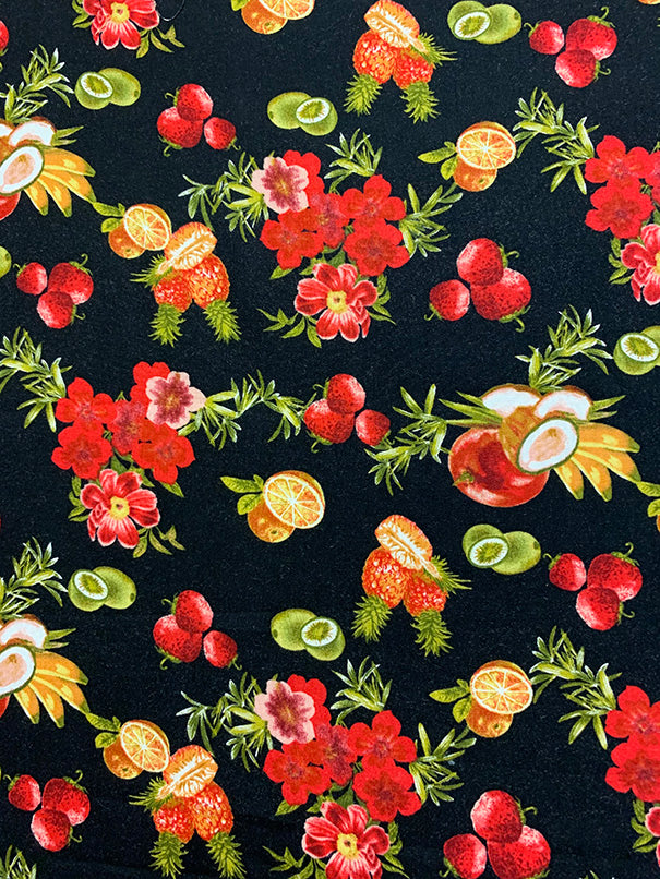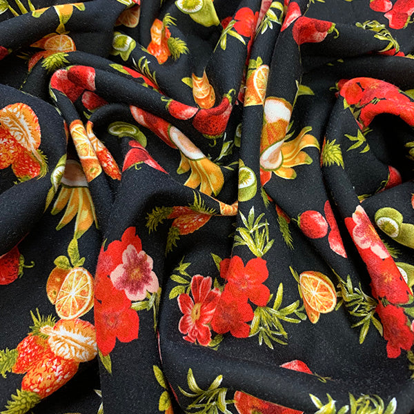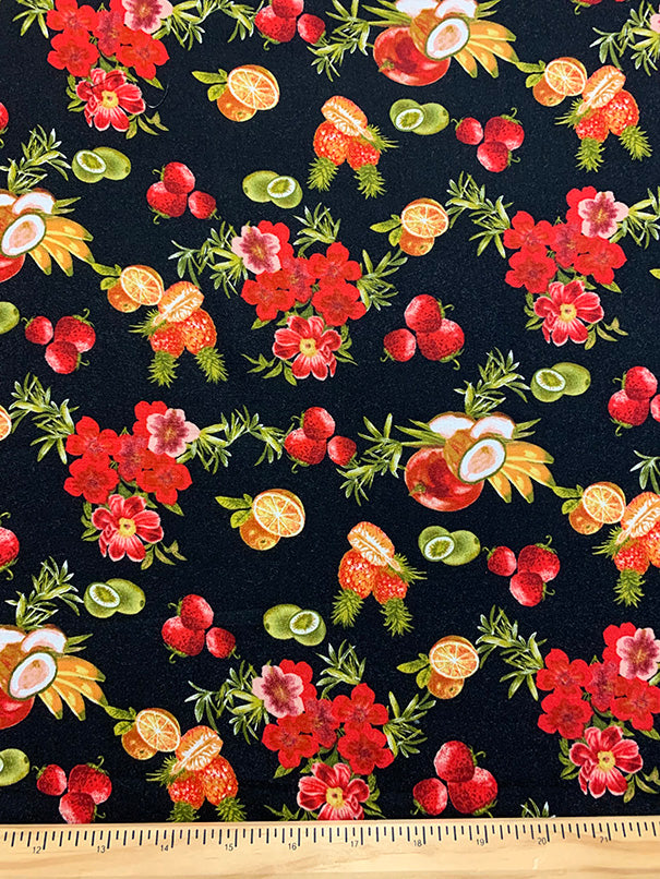 2 YD PC-Black Fruit Print Rayon Challis Fabric