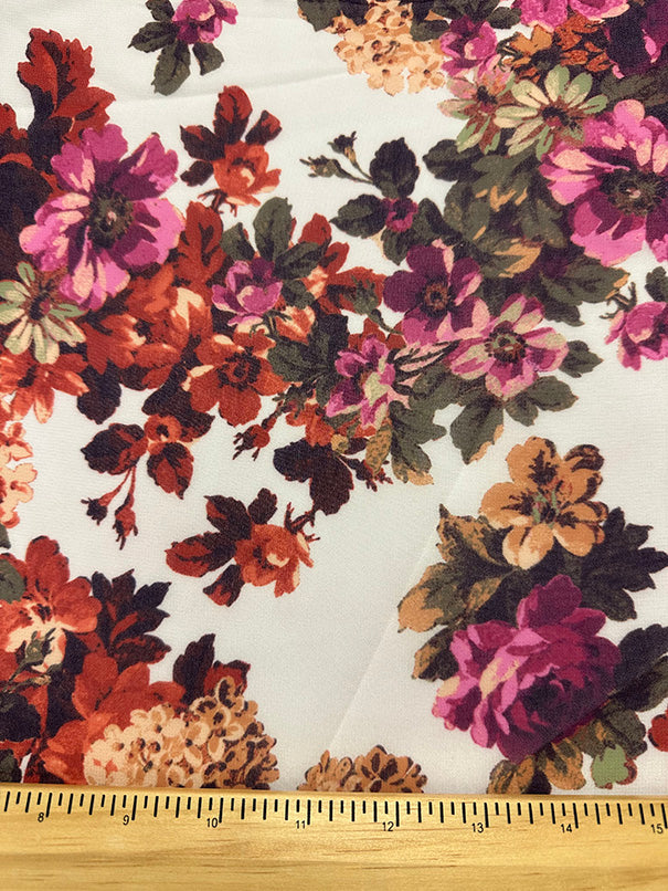 2 YD PC-Ivory Multi Floral Print Poly Chiffon Fabric