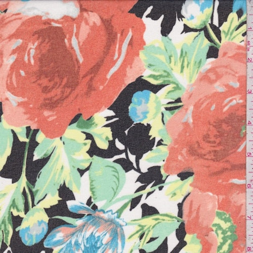 3 YD PC-Black/Aqua/Apricot Brushed Floral Chiffon Fabric