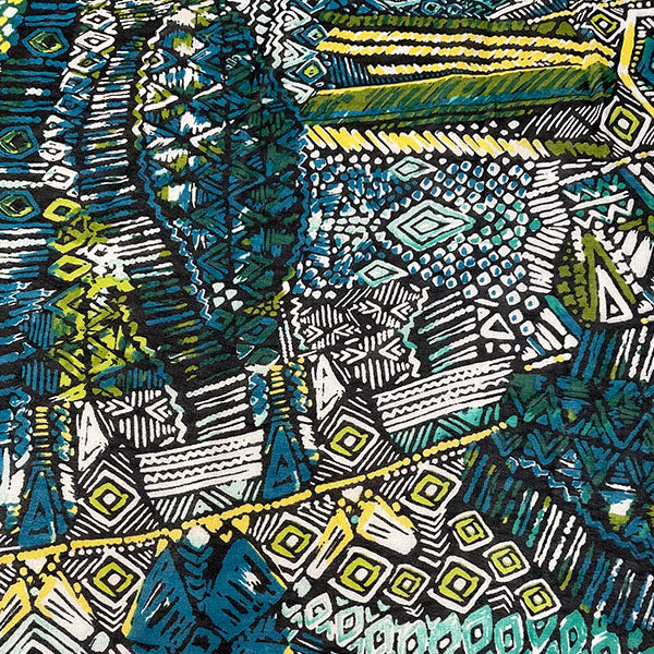 4 3/4 YD PC-Teal Aztec Print Chiffon Fabric