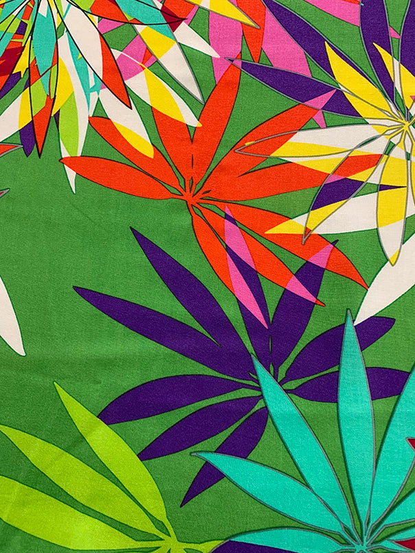 4 YD PC-Green Multi Palm Frond Print Rayon Challis Fabric