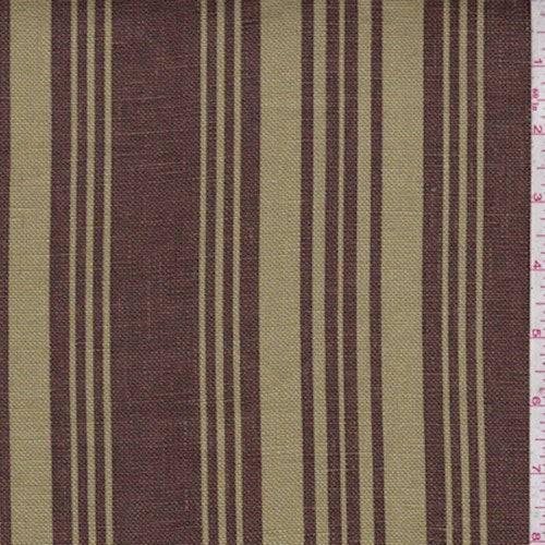 5 1/2 YD PC-Sage Green/Mocha Stripe Printed Linen Decor Fabric
