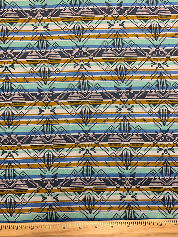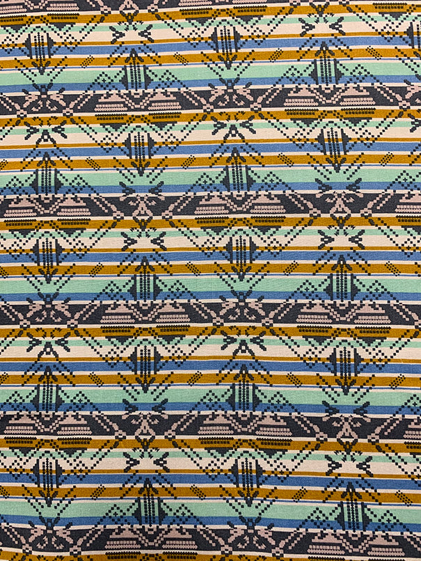 6 1/2 YD PC-Blue and Gold Multi Stripe Print Rayon Challis Fabric