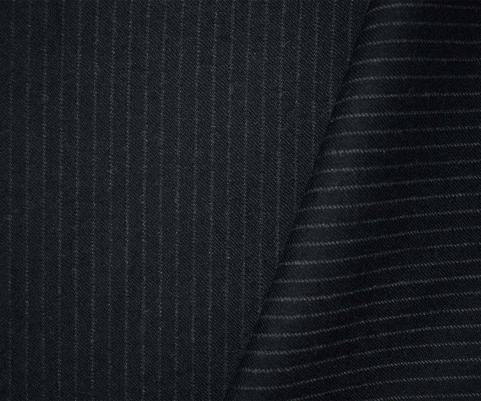 7 YD PC-Black-Gray Wool Rayon Stripe Twill Woven Suiting Fabric