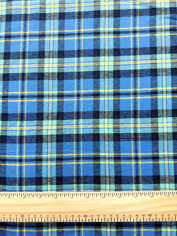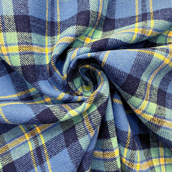 -Aqua Green, Blue, Yellow, & Black Light Weight Single Sided Yarn Dyed Plaid Flannel Fabric