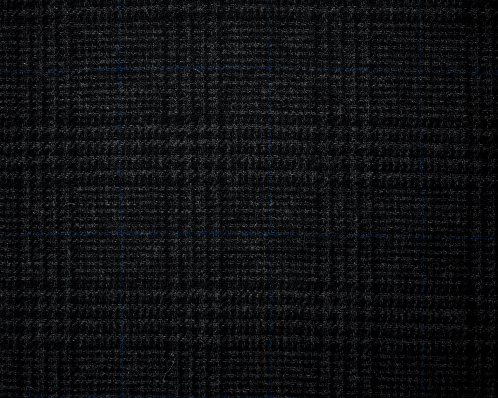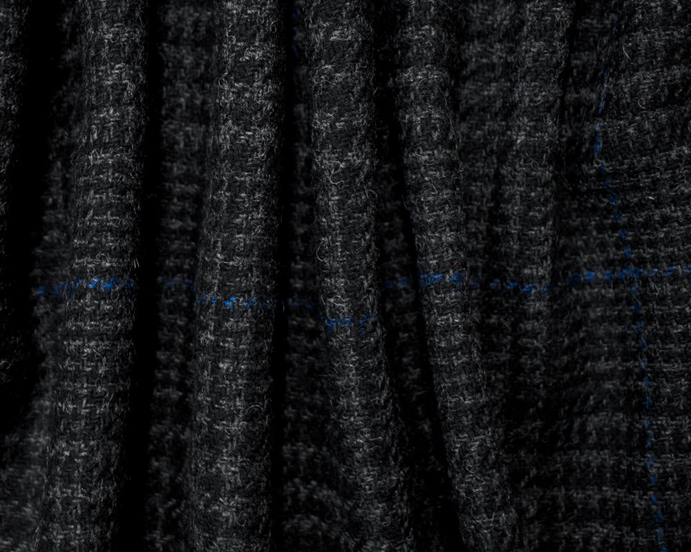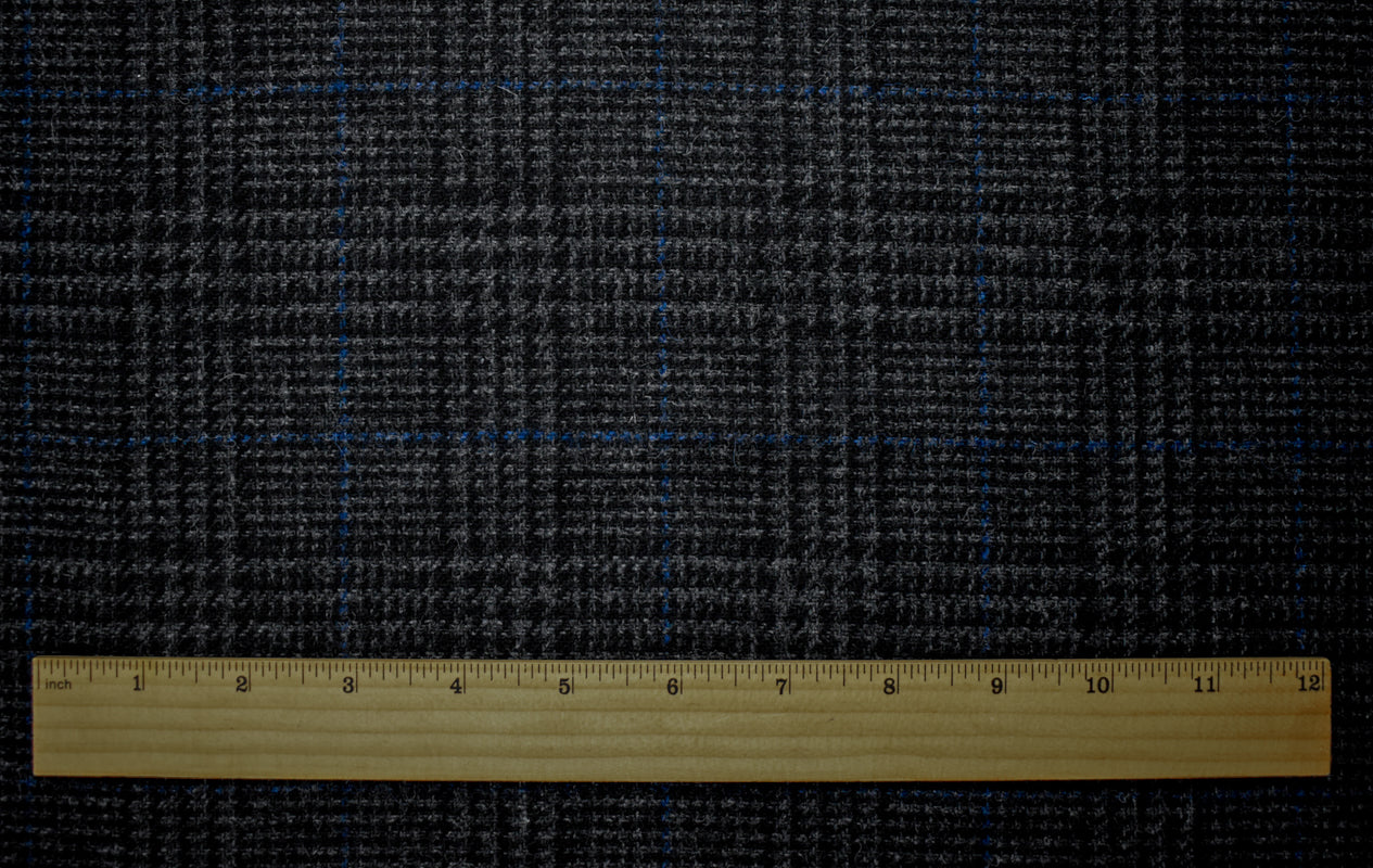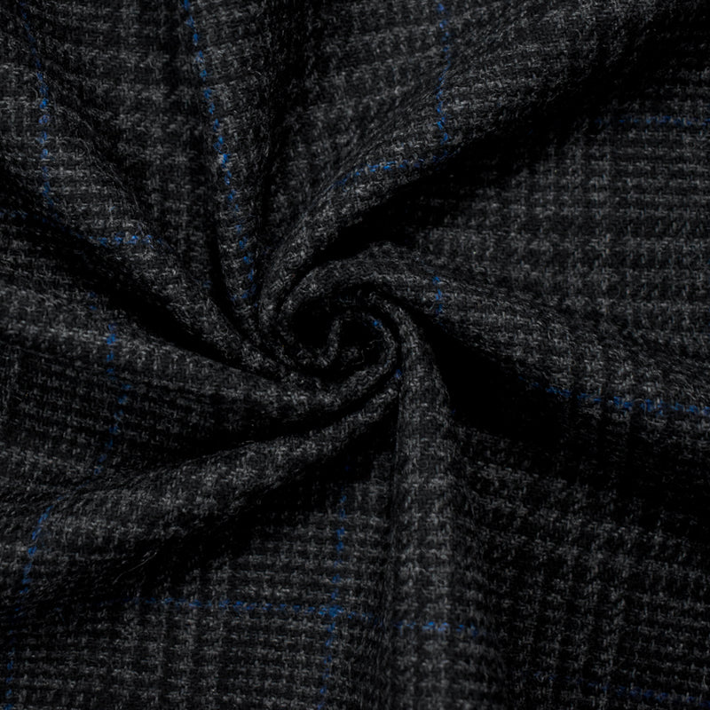 Black-Gray-Blue Wool Rayon Plaid Twill Woven Jacketing Fabric