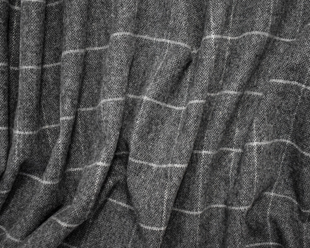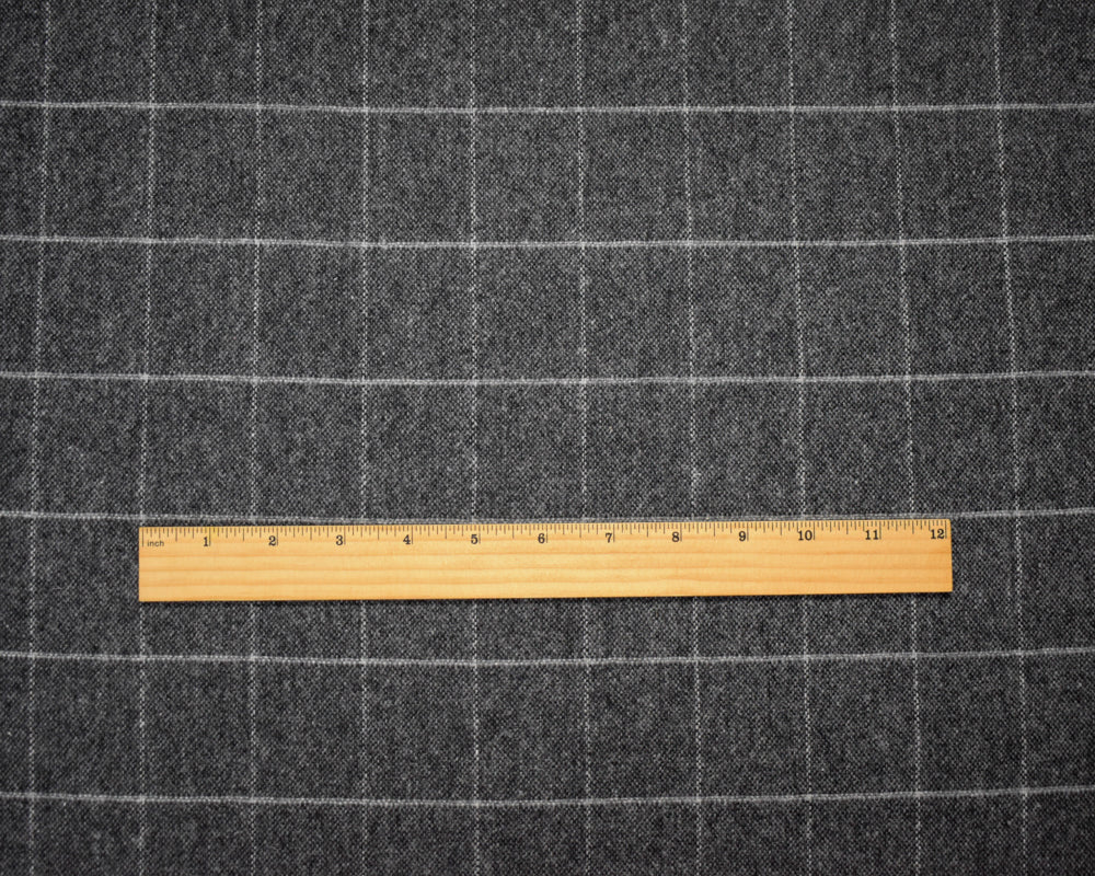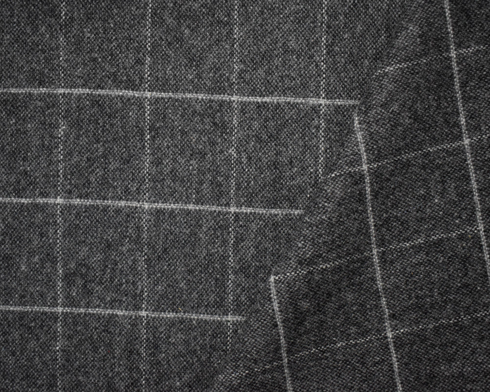 Black-Gray Wool Poly Japanese Grid-Check Woven Jacketing Fabric