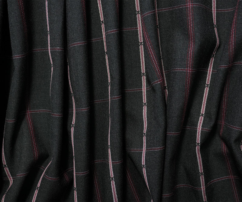 Black-Red-Multi Poly Wool Plaid-Check Twill Woven Suiting Fabric