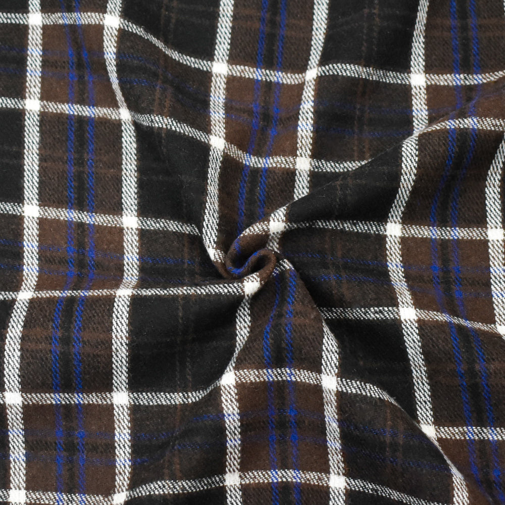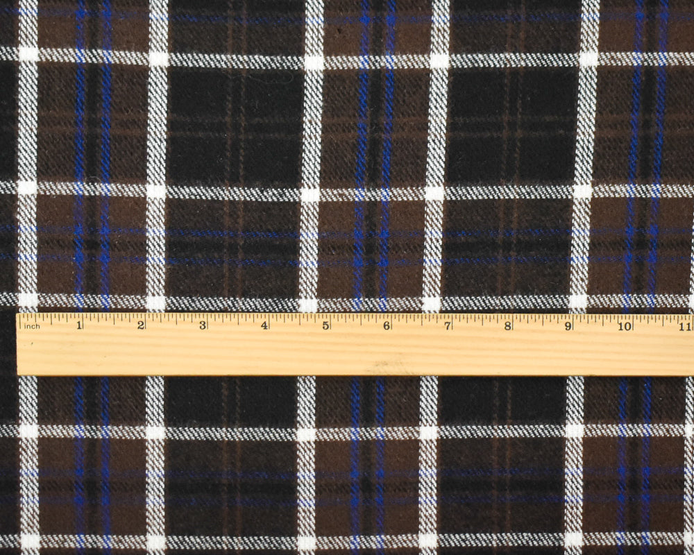 Brown-Bue-Multi Melton Poly-Wool Plaid Twill Woven Jacketing Fabric