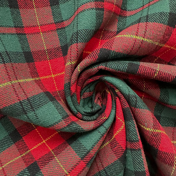 Green and Red Multi Yarn Dyed Plaid Flannel Fabric