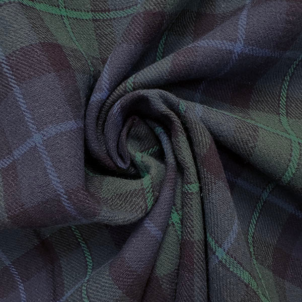 -Green, Blue, & Black Light Weight Single Sided Yarn Dyed Plaid Flannel Fabric