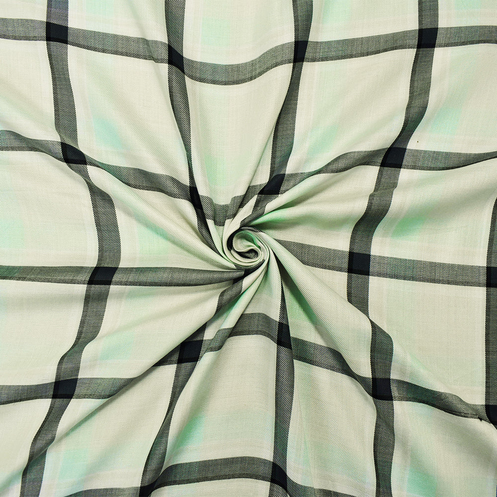 Ivory-Mint-Multi Rayon Famous Maker Plaid Twill Woven Fabric