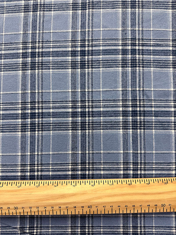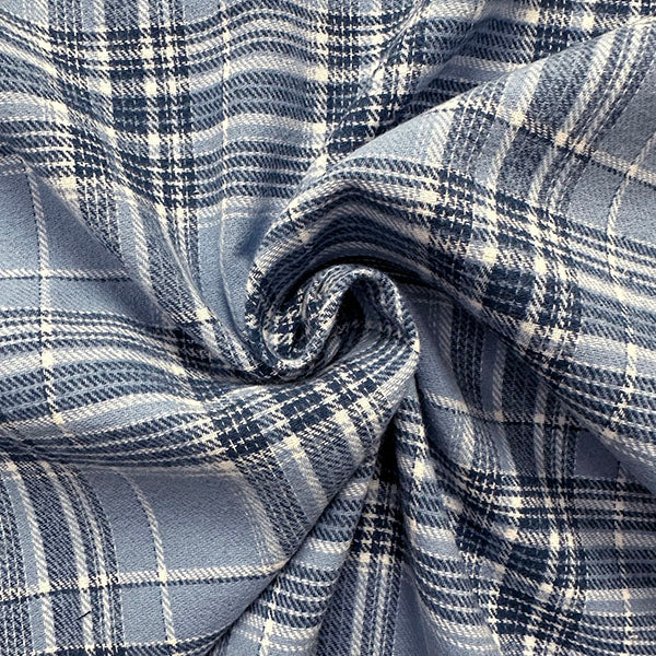 -Shades of Blue & White Light Weight Single Sided Yarn Dyed Plaid Flannel Fabric