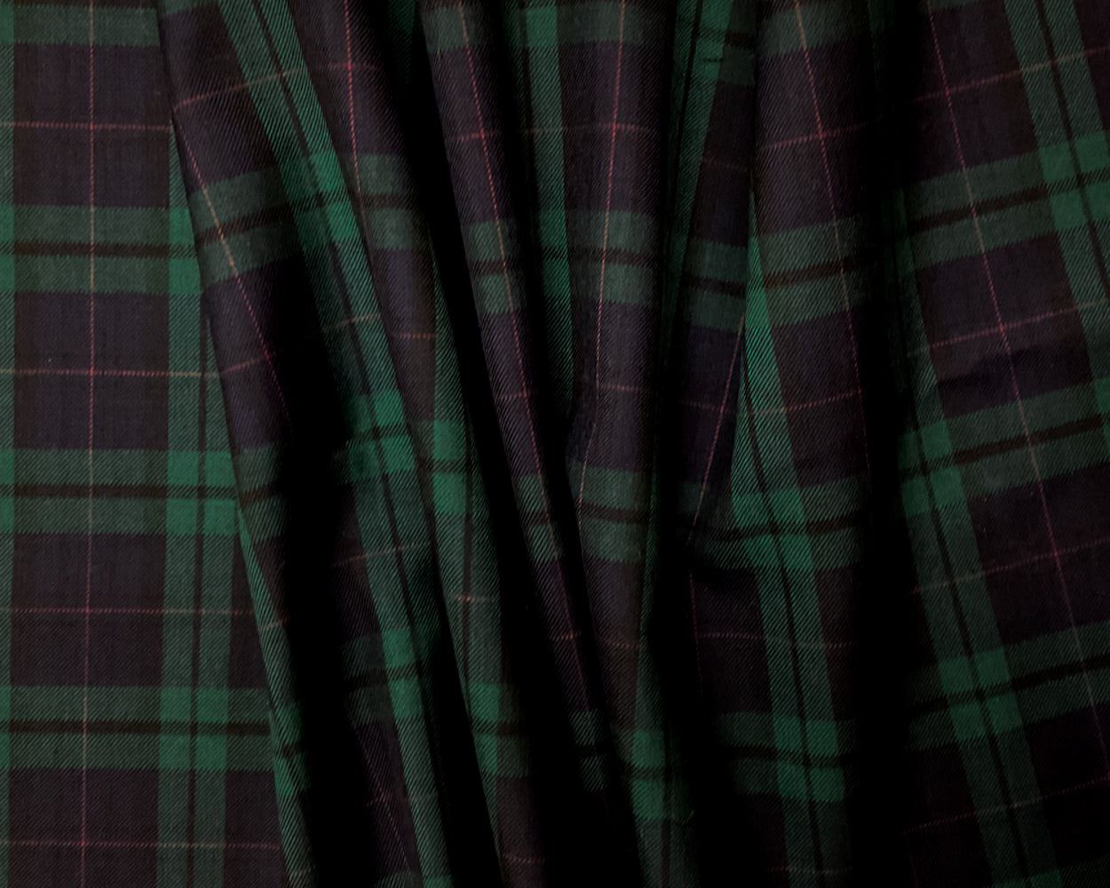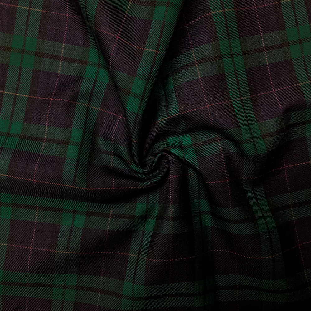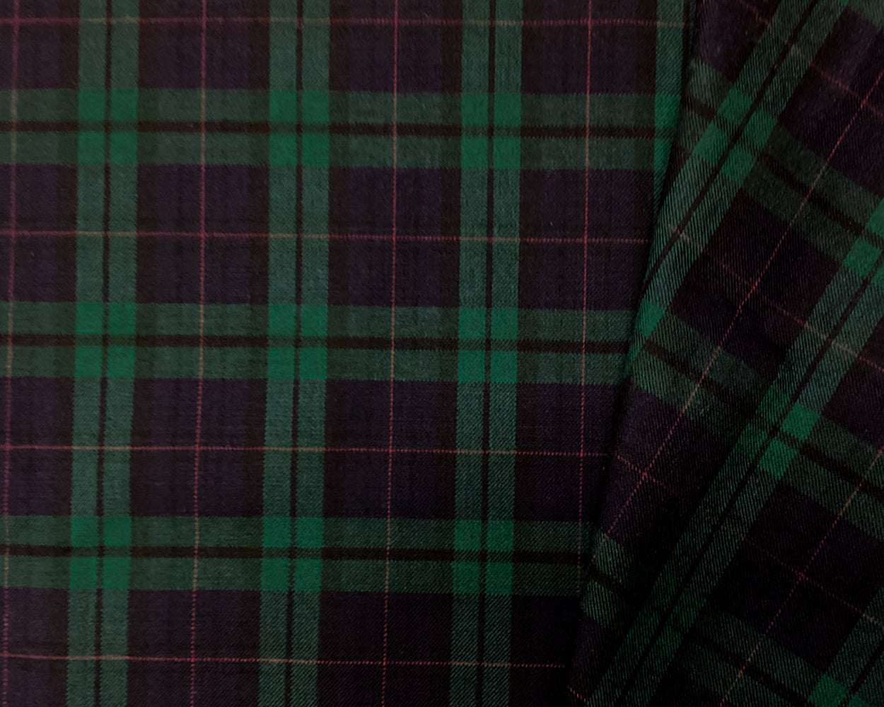 Navy-Green-Multi Poly-Wool Japanese Plaid Twill Suiting Woven Fabric
