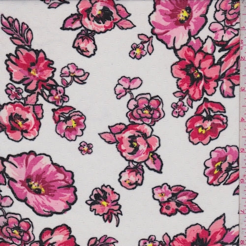 White/Deep Pink Dogwood Floral Chiffon Fabric