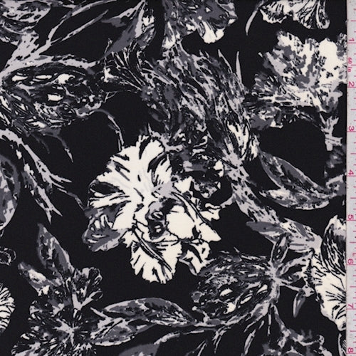 Black/Pewter/Ivory Modern Floral Crepe Georgette Fabric