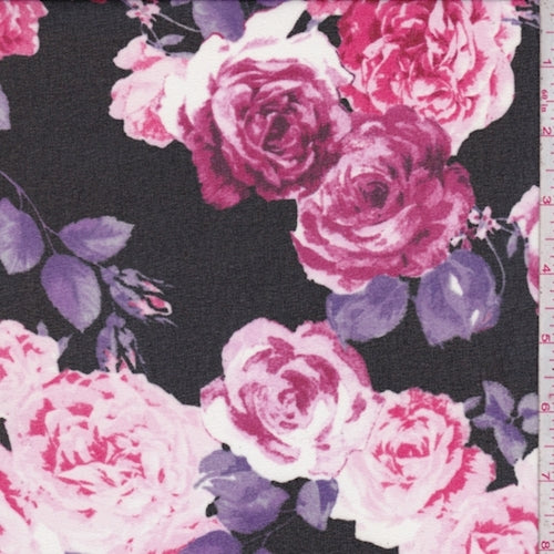 Black/Pink Rose Crepe Georgette Fabric
