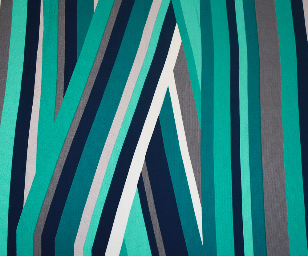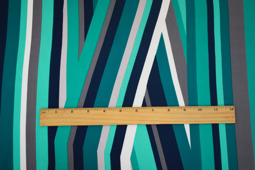 Turquoise-Multi Abstract Geometric Stripe Printed Pebble Georgette Fabric