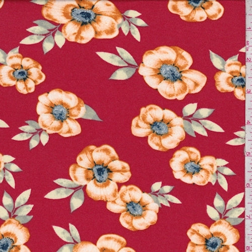 Fire Red/Orange Floral Double Brushed Jersey Knit Fabric