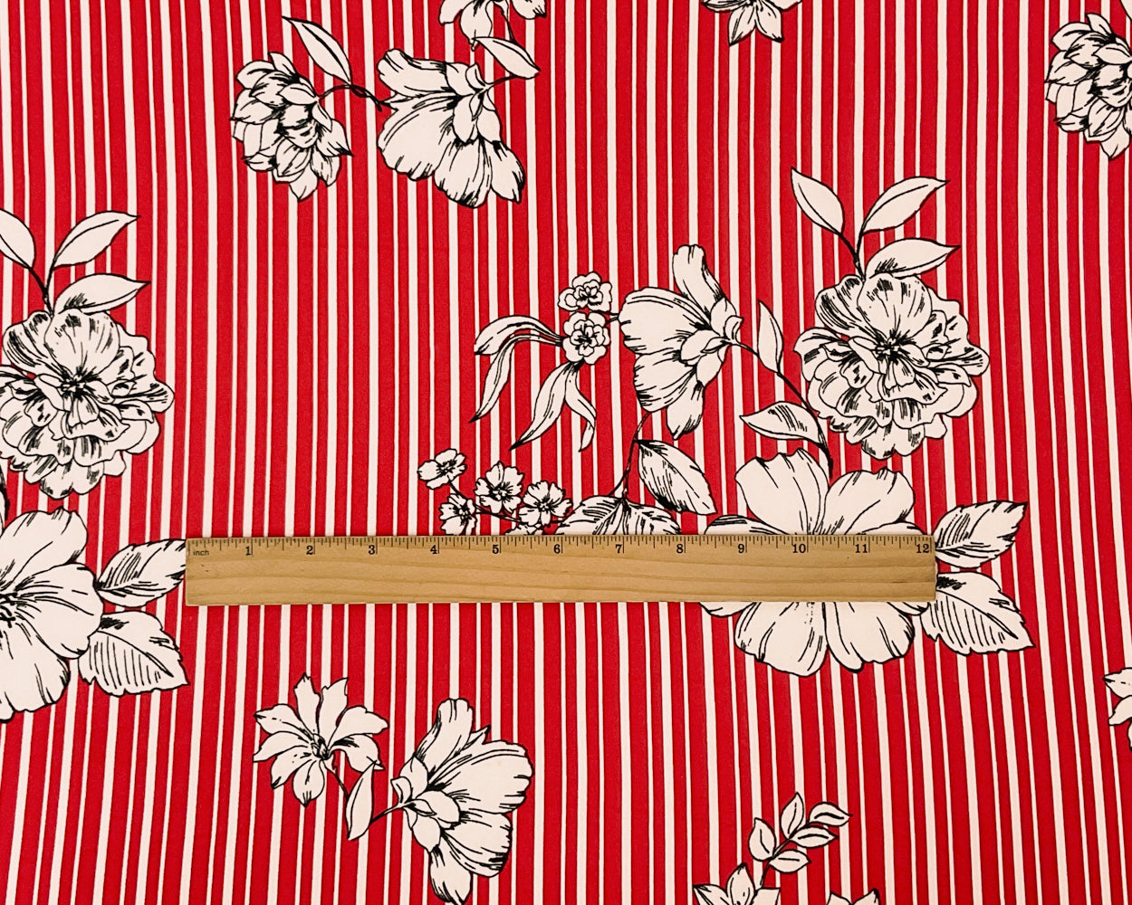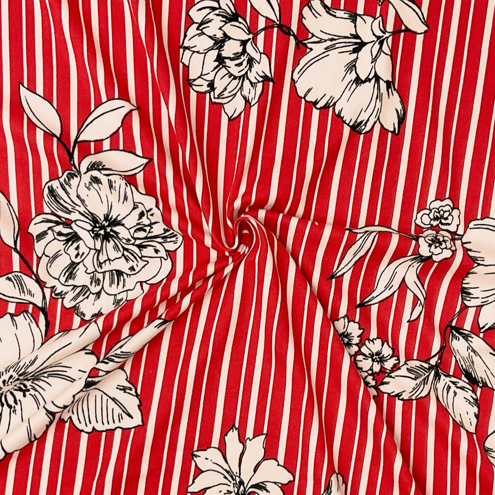 Red-Multi Poly Spandex Stretch Floral Stripe Print DB Jersey Knit Fabric