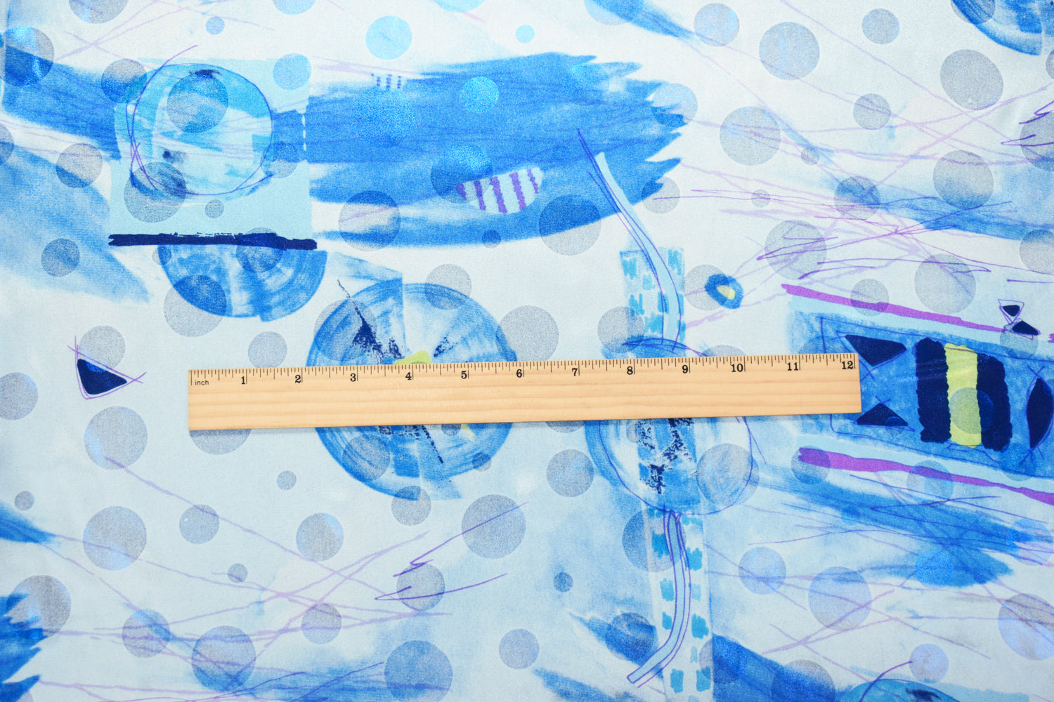 Blue-Purple-Multi Poly Iridescent Abstract Printed Satin Woven Fabric