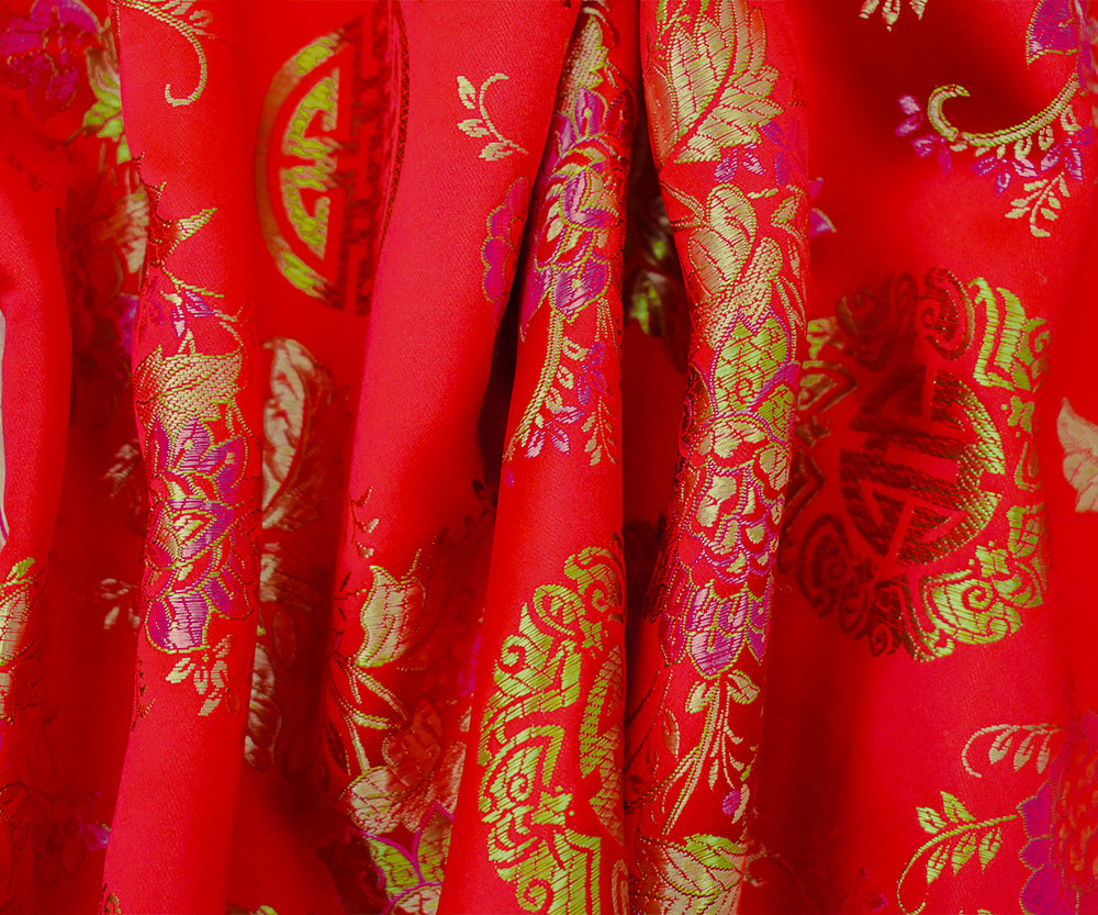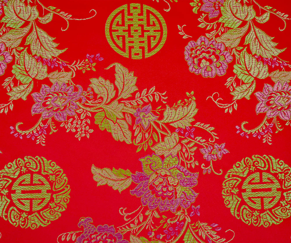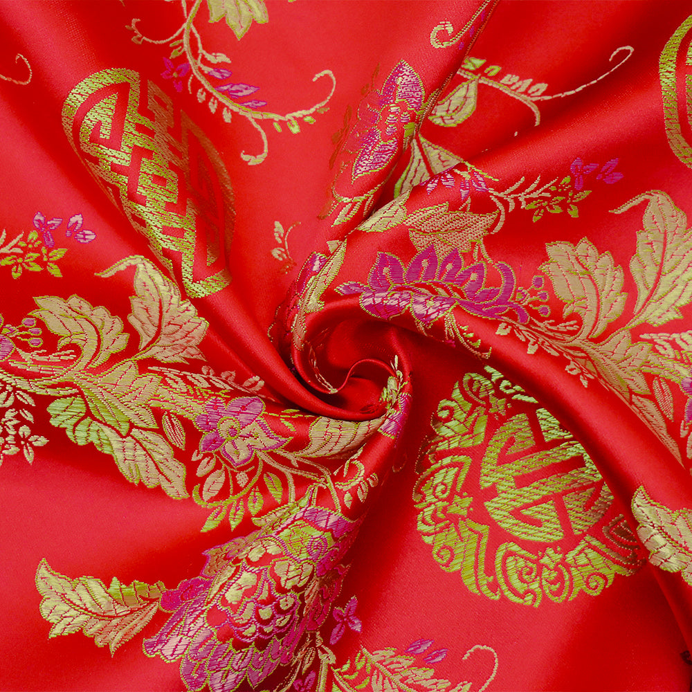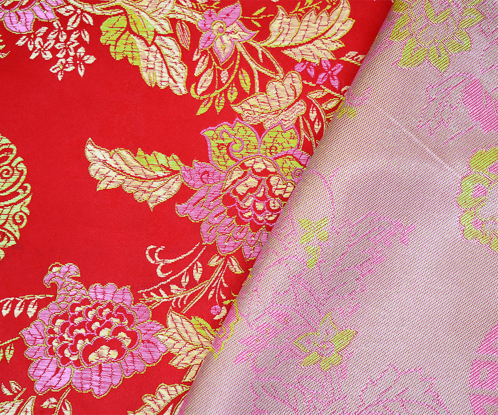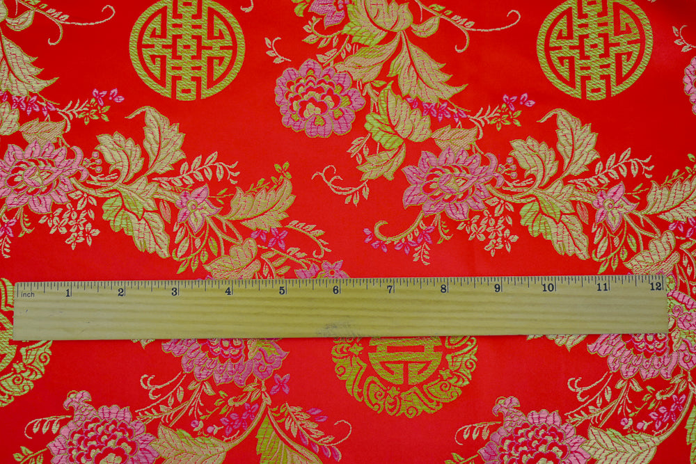 Red-Pink-Multi Polyester Floral Chinese Brocade Woven Fabric