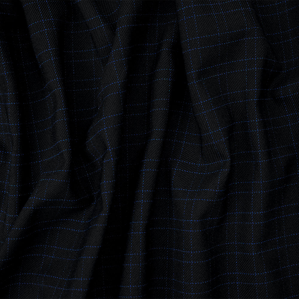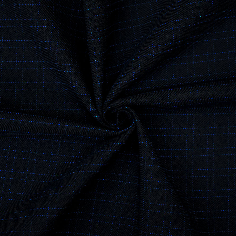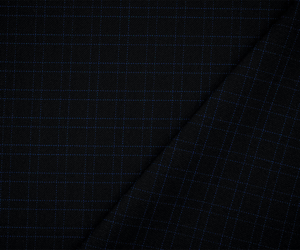 Black-Blue Polyester Striped Plaid Twill Suiting Woven Fabric