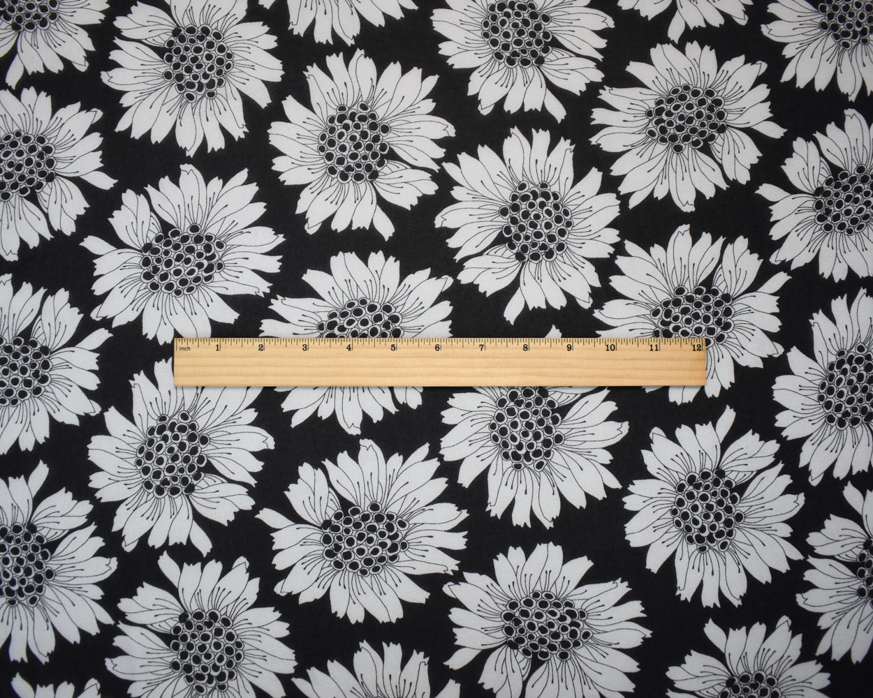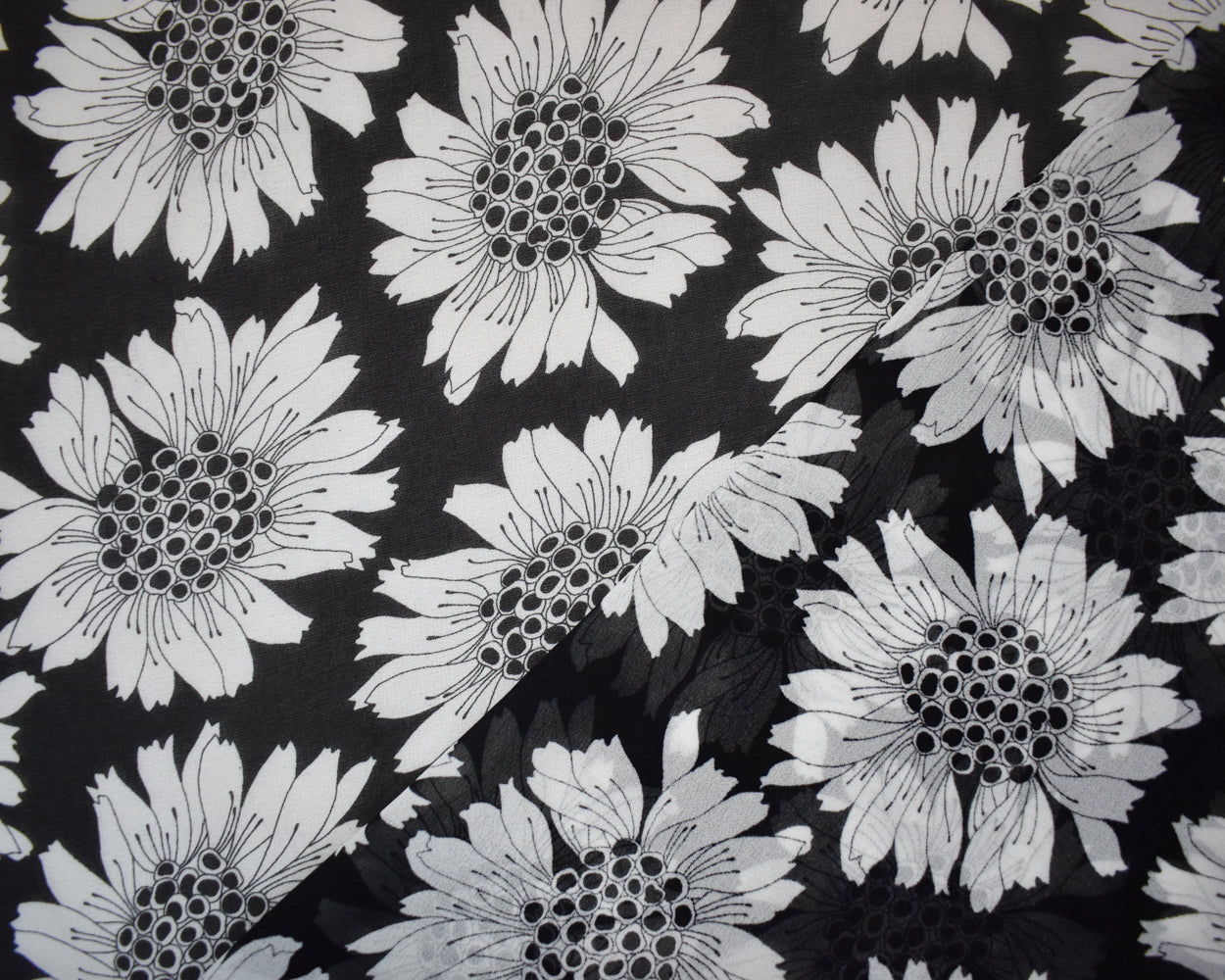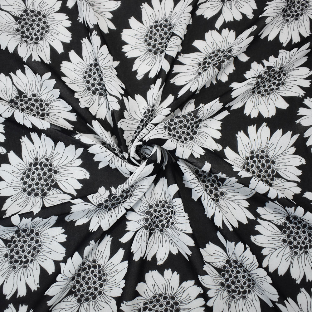 Black-White Poly Floral Printed Pebble Chiffon Woven Fabric