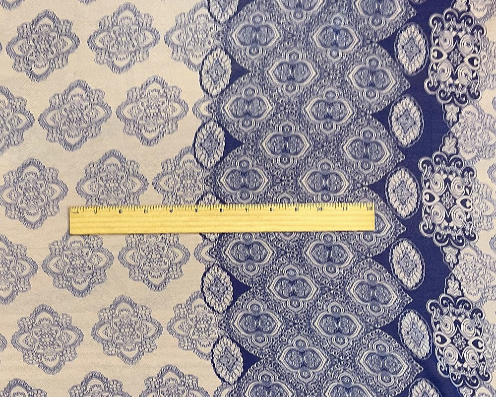 Blue-Beige Poly Paisley Printed Silky Pebble Chiffon Woven Fabric
