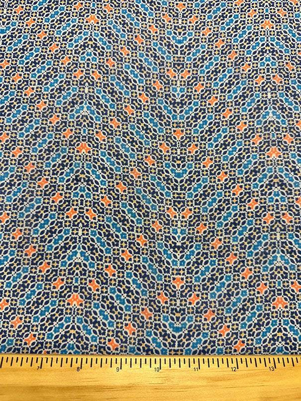 -Dark Blue, Turquoise, Yellow, & Neon Orange Geometric Herringbone Poly Print Sheer Chiffon Fabric