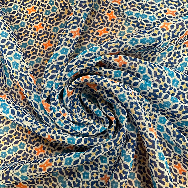Blue Geometric Herringbone Poly Print Chiffon Fabric